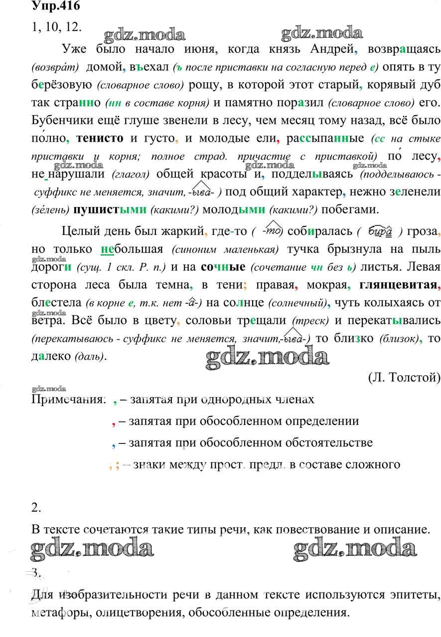 ОТВЕТ на задание № 416 Учебник по Русскому языку 8 класс Разумовская Вертикаль