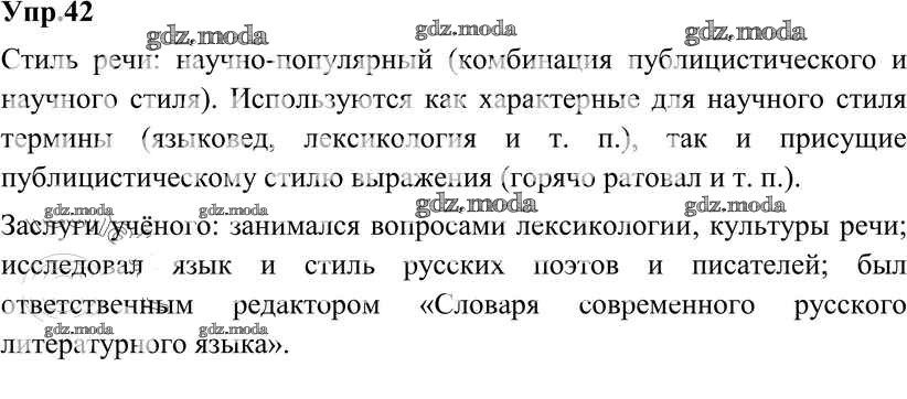 ОТВЕТ на задание № 42 Учебник по Русскому языку 8 класс Разумовская Вертикаль