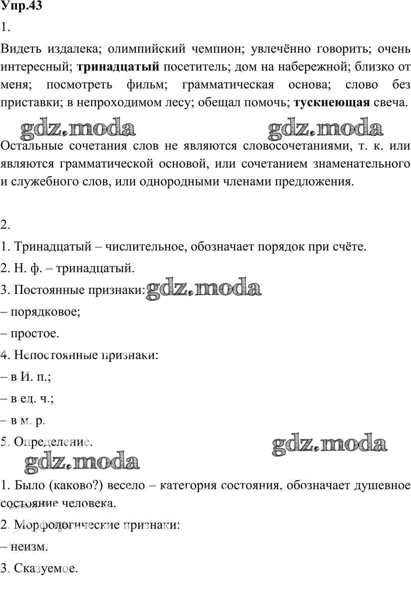 ОТВЕТ на задание № 43 Учебник по Русскому языку 8 класс Разумовская Вертикаль
