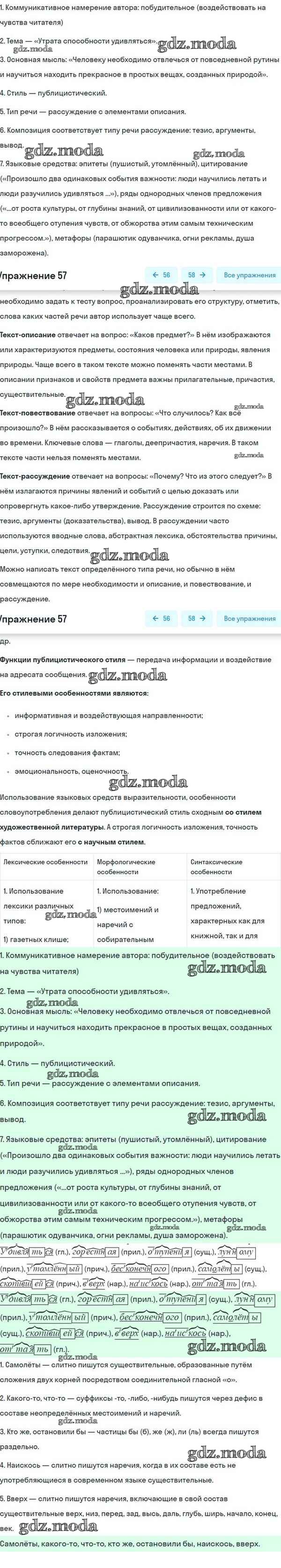 ОТВЕТ на задание № 57 Учебник по Русскому языку 8 класс Разумовская Вертикаль