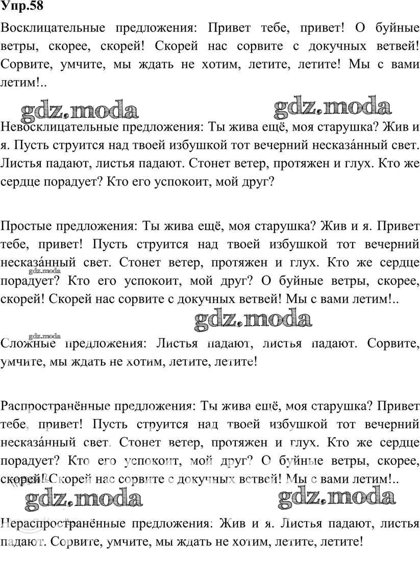 ОТВЕТ на задание № 58 Учебник по Русскому языку 8 класс Разумовская Вертикаль