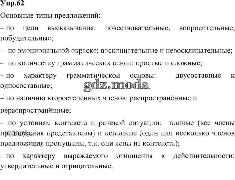 ОТВЕТ на задание № 62 Учебник по Русскому языку 8 класс Разумовская Вертикаль