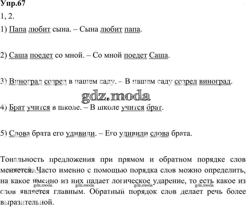ОТВЕТ на задание № 67 Учебник по Русскому языку 8 класс Разумовская Вертикаль