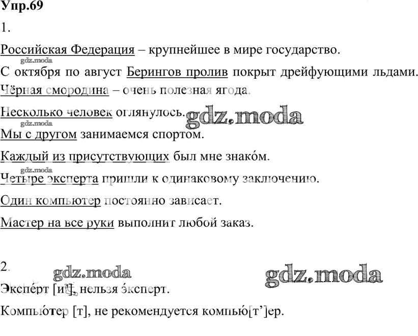 ОТВЕТ на задание № 69 Учебник по Русскому языку 8 класс Разумовская Вертикаль