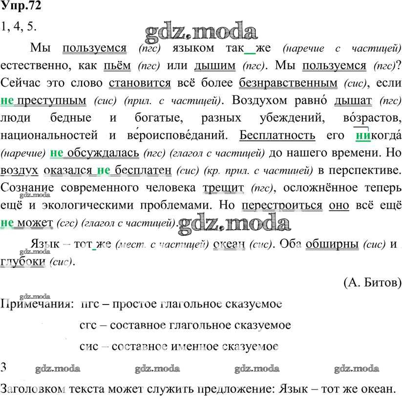 ОТВЕТ на задание № 72 Учебник по Русскому языку 8 класс Разумовская Вертикаль
