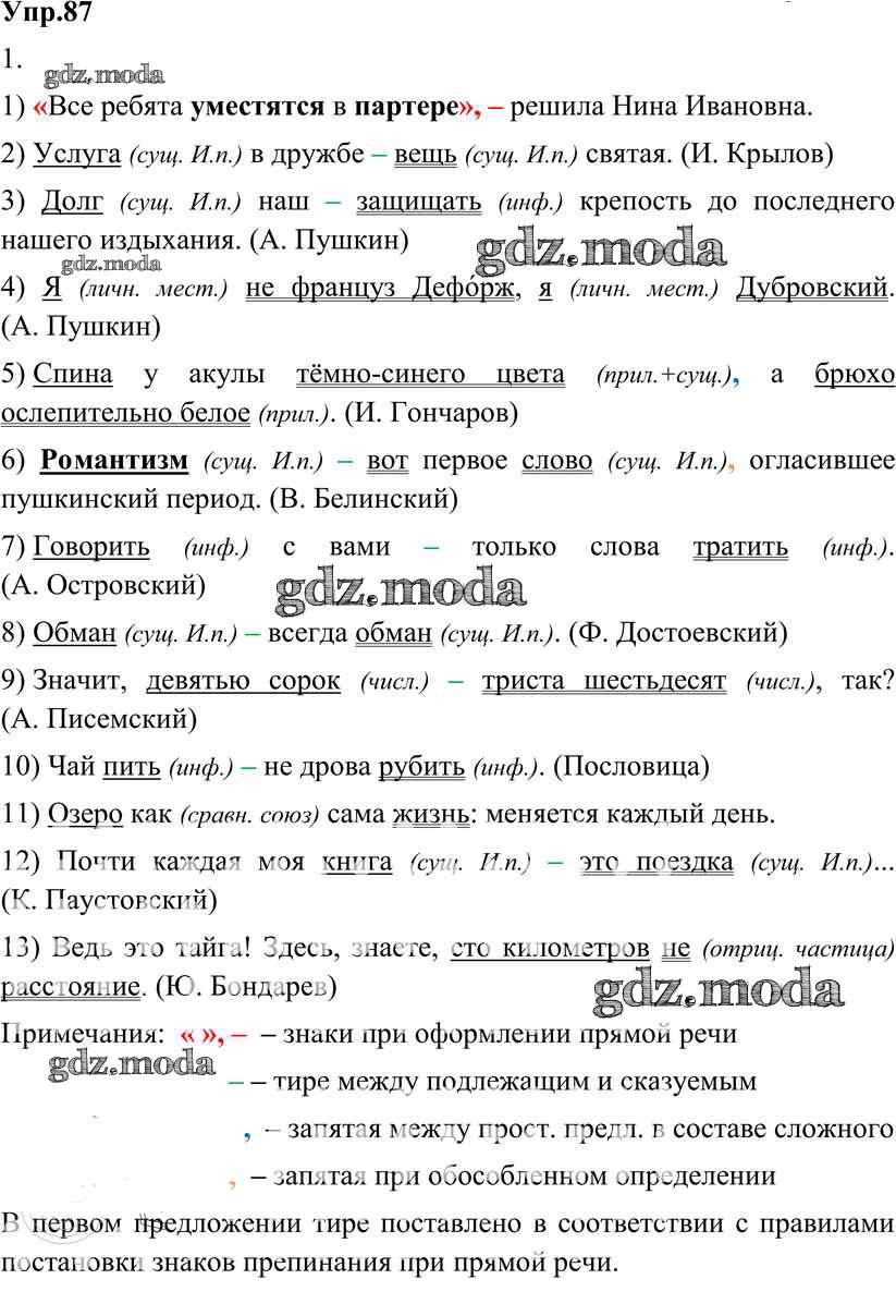 ОТВЕТ на задание № 87 Учебник по Русскому языку 8 класс Разумовская Вертикаль