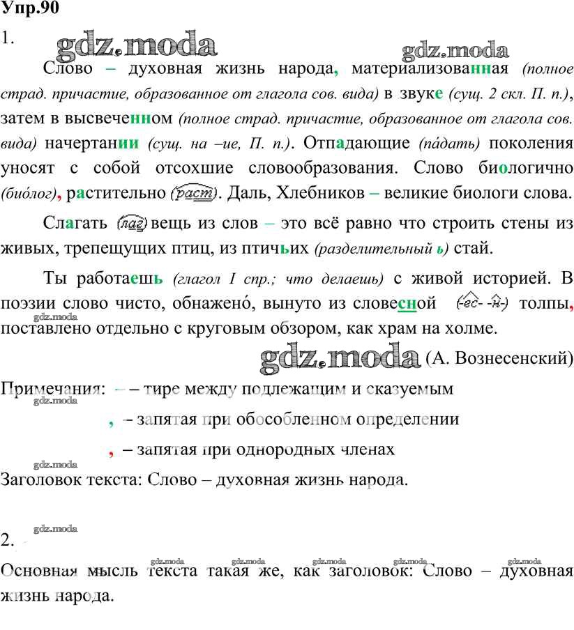 ОТВЕТ на задание № 90 Учебник по Русскому языку 8 класс Разумовская Вертикаль