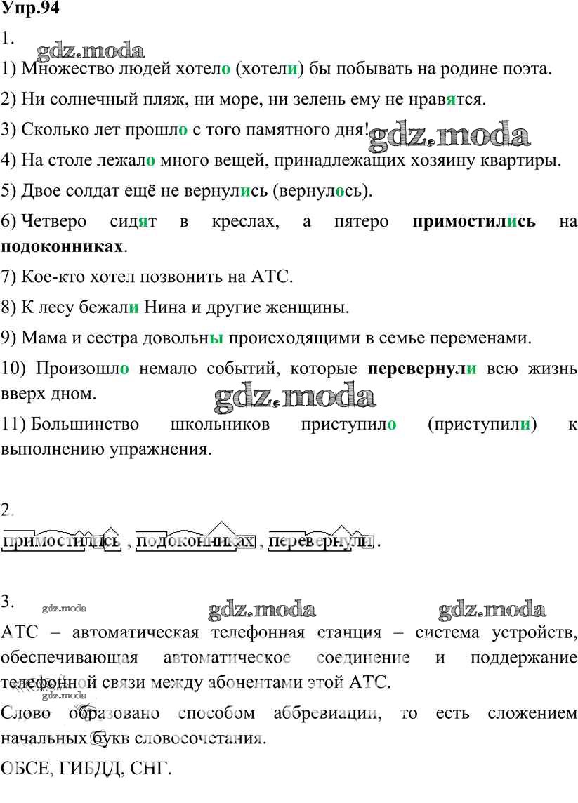 ОТВЕТ на задание № 94 Учебник по Русскому языку 8 класс Разумовская Вертикаль