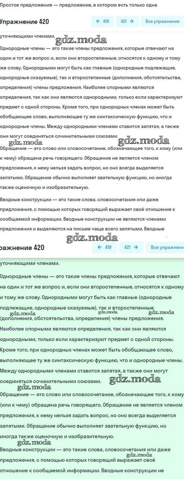 ОТВЕТ на задание № 420 Учебник по Русскому языку 8 класс Разумовская Вертикаль