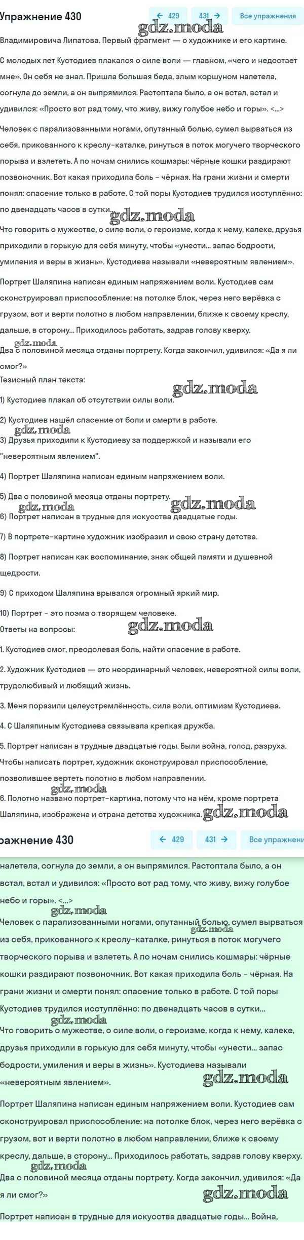 ОТВЕТ на задание № 430 Учебник по Русскому языку 8 класс Разумовская Вертикаль