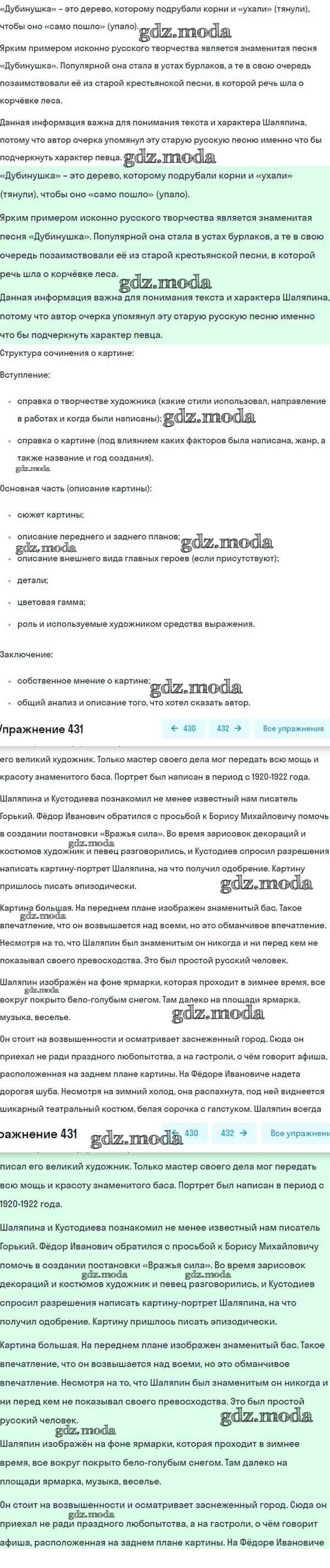 ОТВЕТ на задание № 431 Учебник по Русскому языку 8 класс Разумовская Вертикаль