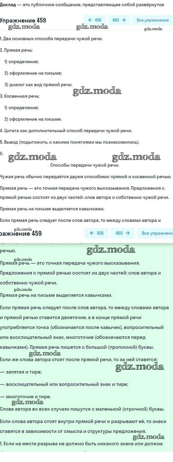 ГДЗ решение к заданию № 459 Русский язык 8 класс Разумовская М.М. Дрофа, Просвещение 2015, 2022 ФГОС бесплатно на гдз.мода!