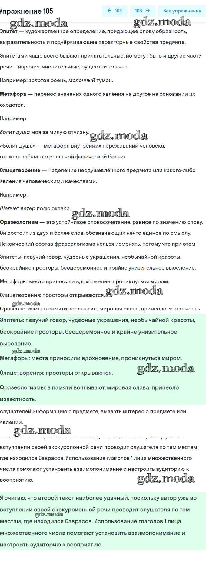 ОТВЕТ на задание № 105 Учебник по Русскому языку 8 класс Рыбченкова