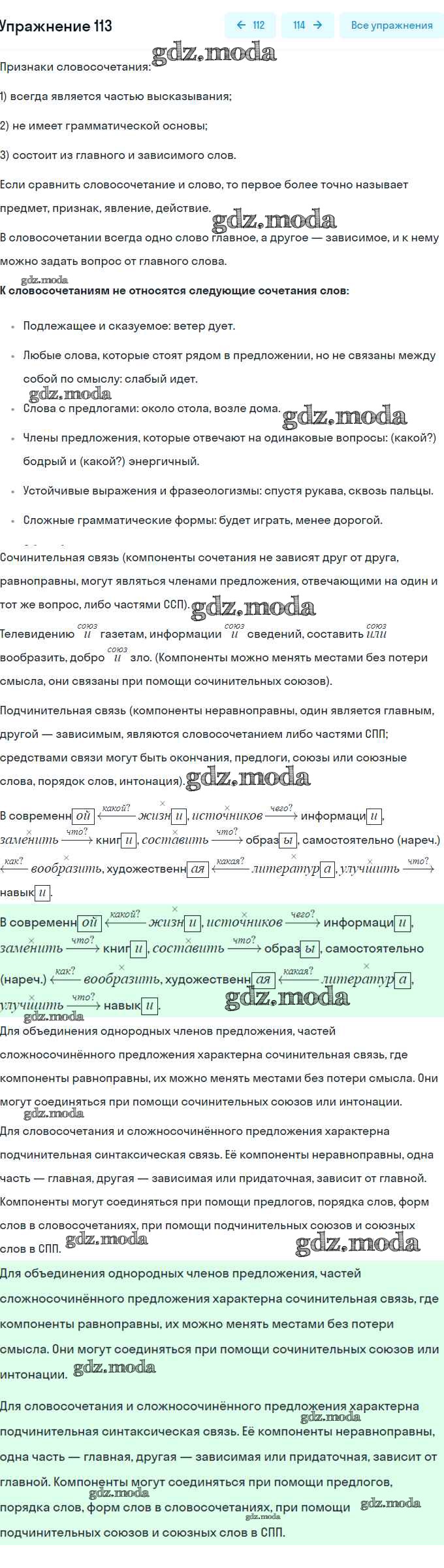 ГДЗ решение к заданию № 113 Русский язык 8 класс Рыбченкова Л.М. Просвещение, Просвещение 2022, 2015 ФГОС бесплатно на гдз.мода!