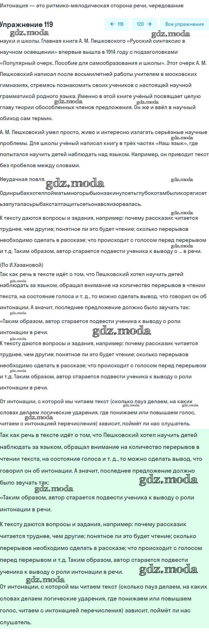 ОТВЕТ на задание № 119 Учебник по Русскому языку 8 класс Рыбченкова