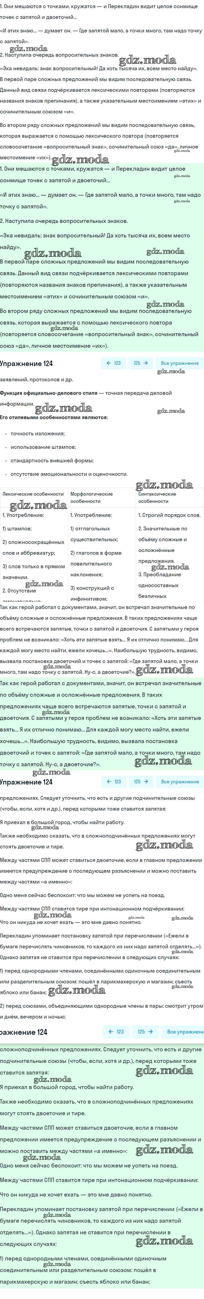 ОТВЕТ на задание № 124 Учебник по Русскому языку 8 класс Рыбченкова