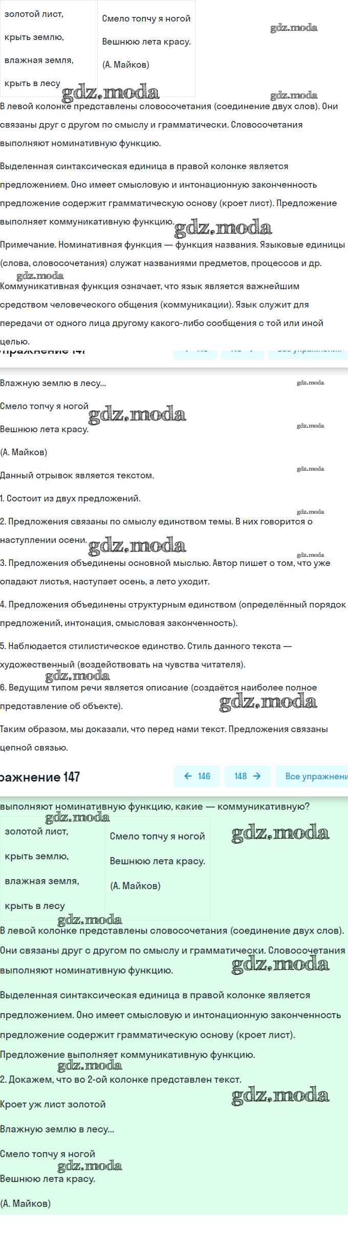 ОТВЕТ на задание № 147 Учебник по Русскому языку 8 класс Рыбченкова