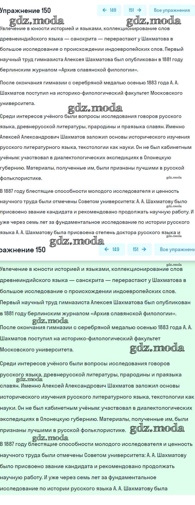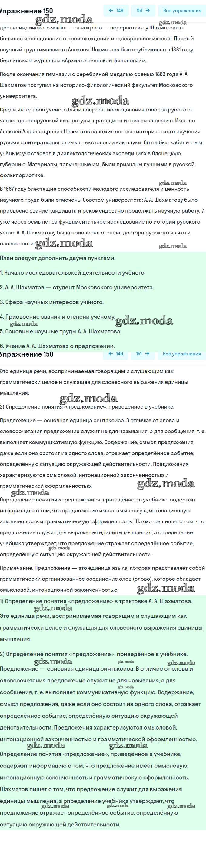ОТВЕТ на задание № 150 Учебник по Русскому языку 8 класс Рыбченкова