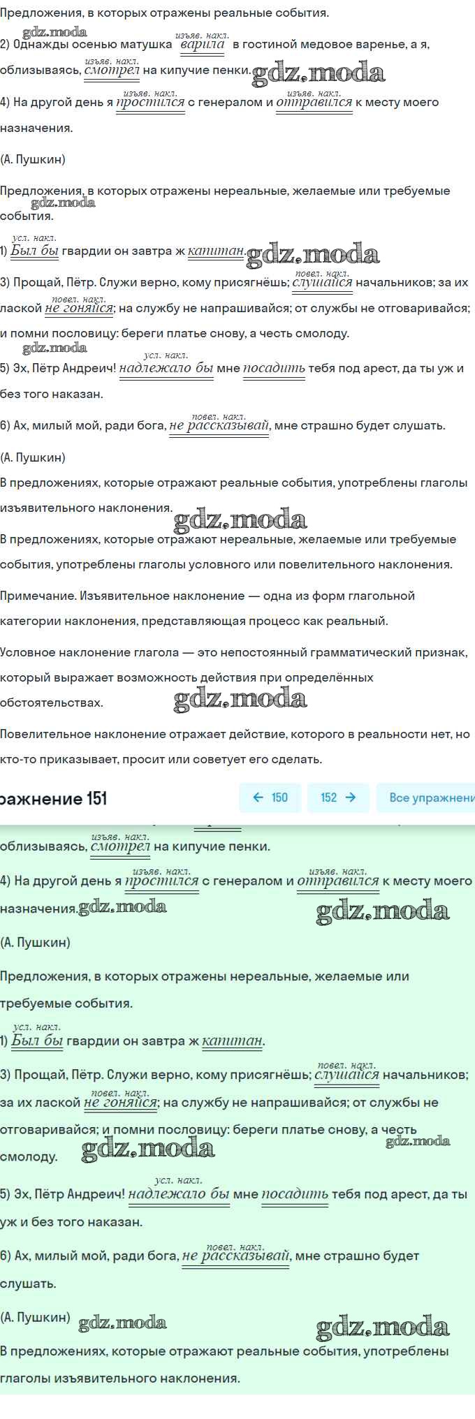 ОТВЕТ на задание № 151 Учебник по Русскому языку 8 класс Рыбченкова
