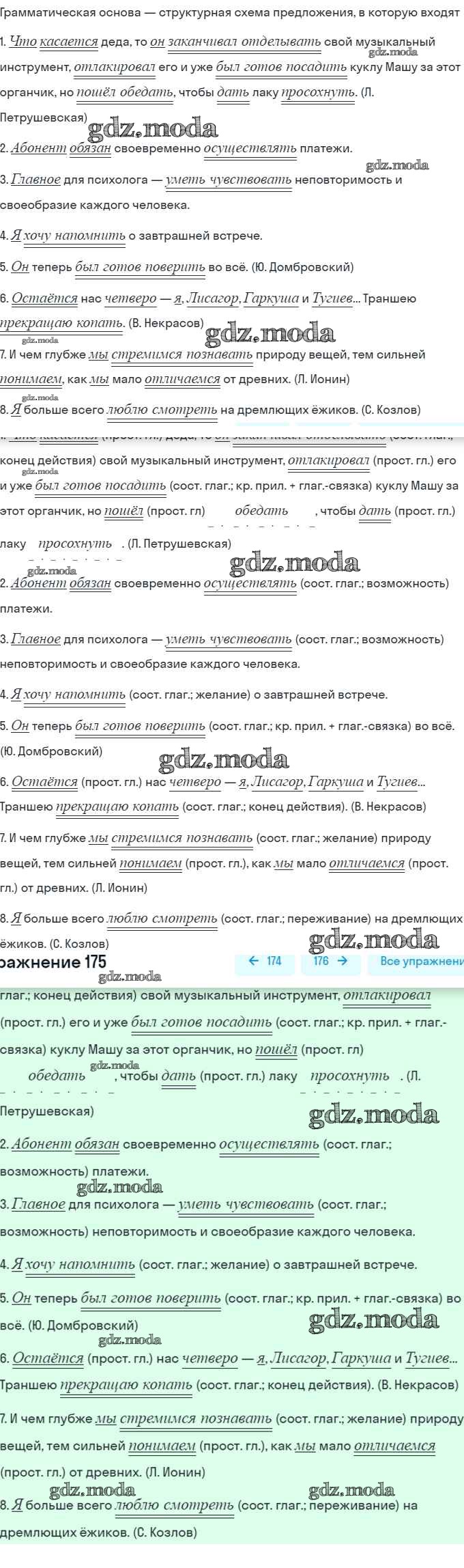 ОТВЕТ на задание № 175 Учебник по Русскому языку 8 класс Рыбченкова