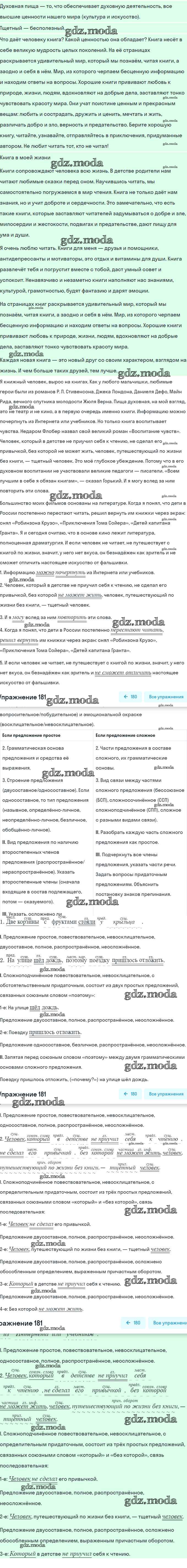 ОТВЕТ на задание № 181 Учебник по Русскому языку 8 класс Рыбченкова