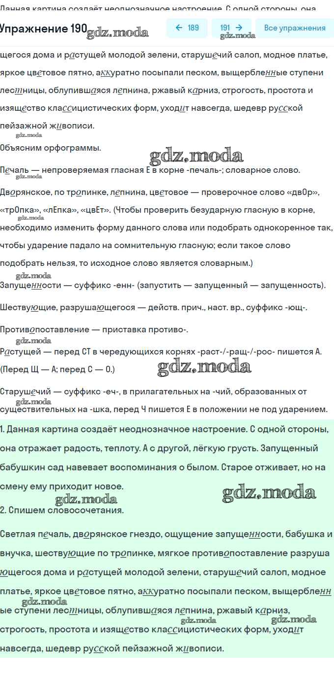 ОТВЕТ на задание № 190 Учебник по Русскому языку 8 класс Рыбченкова