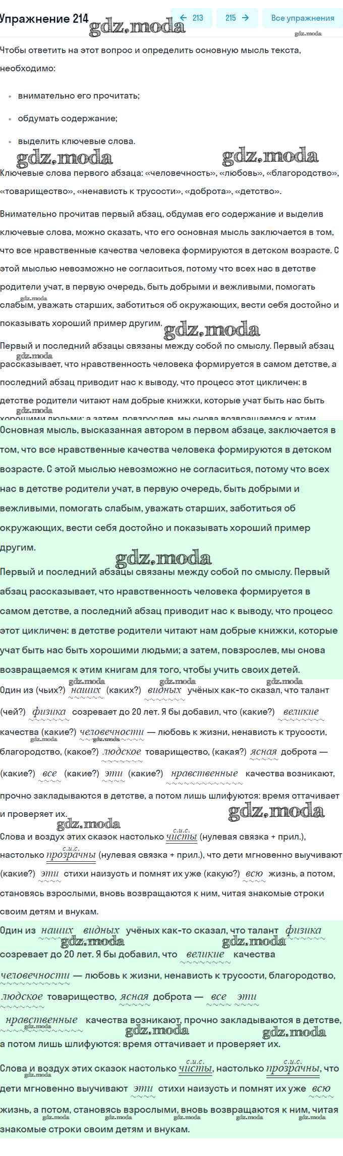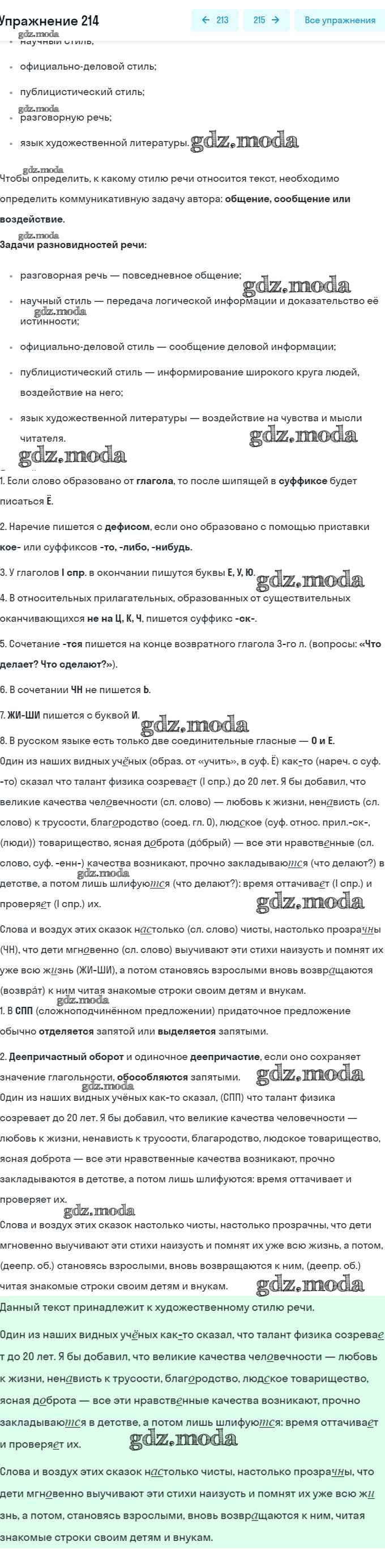 ОТВЕТ на задание № 214 Учебник по Русскому языку 8 класс Рыбченкова