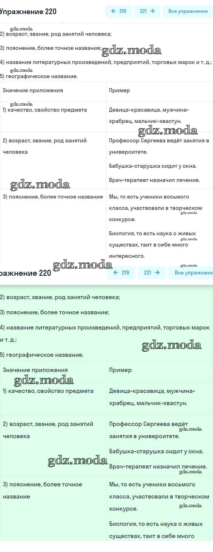 ОТВЕТ на задание № 220 Учебник по Русскому языку 8 класс Рыбченкова