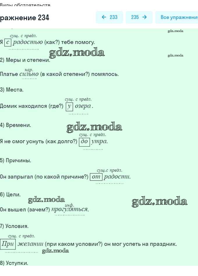 ОТВЕТ на задание № 234 Учебник по Русскому языку 8 класс Рыбченкова