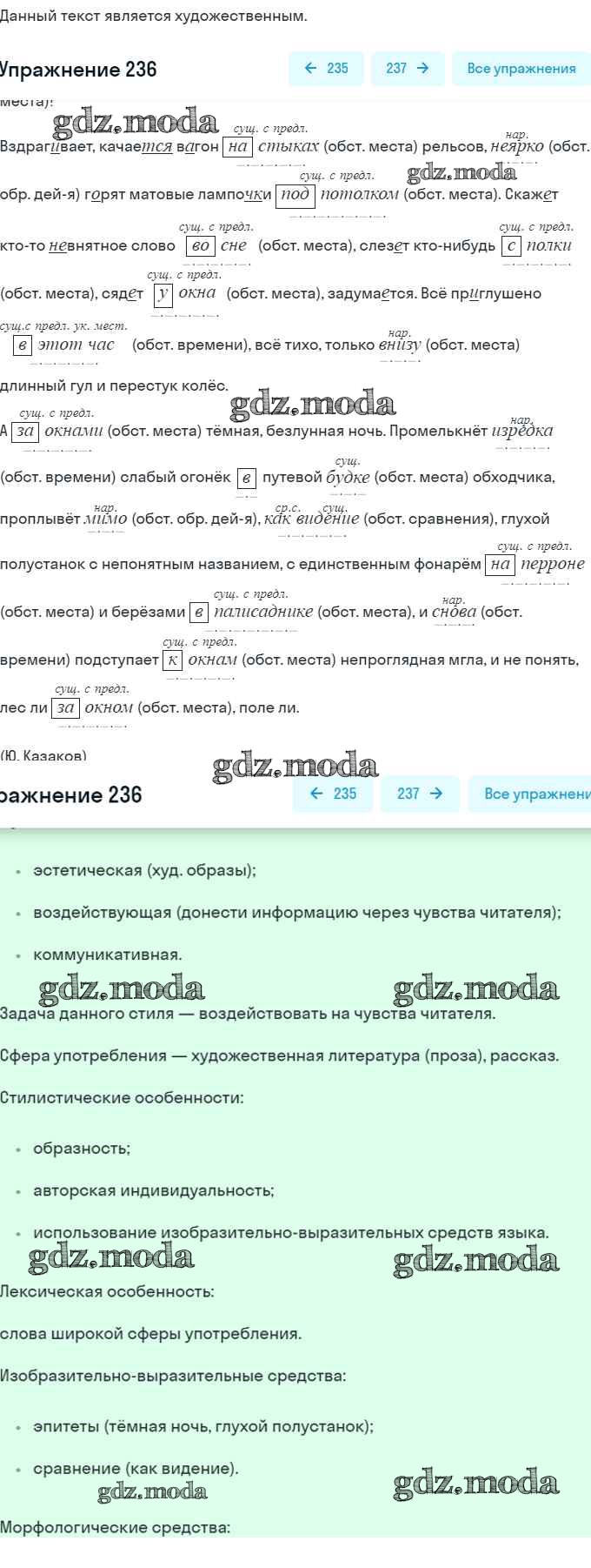 ОТВЕТ на задание № 236 Учебник по Русскому языку 8 класс Рыбченкова
