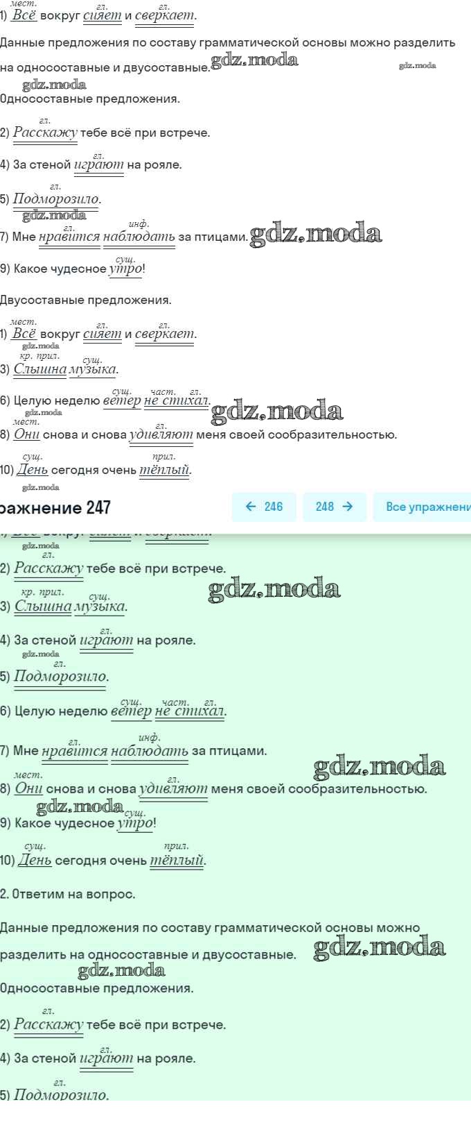 ОТВЕТ на задание № 247 Учебник по Русскому языку 8 класс Рыбченкова