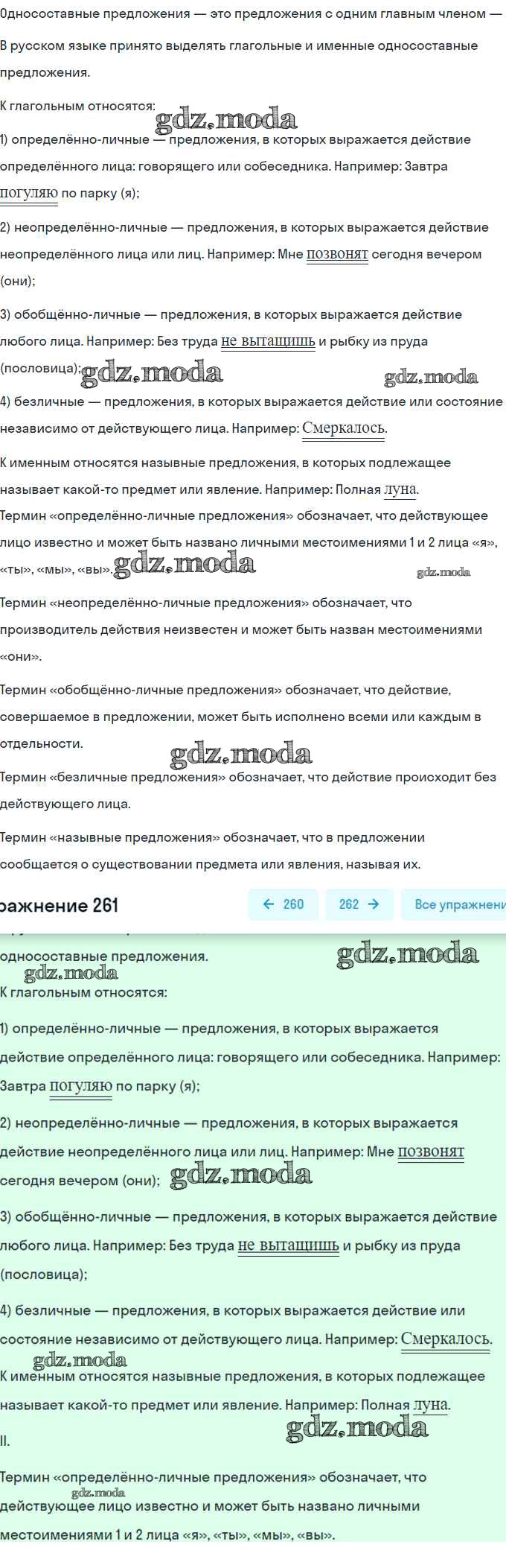 ОТВЕТ на задание № 261 Учебник по Русскому языку 8 класс Рыбченкова