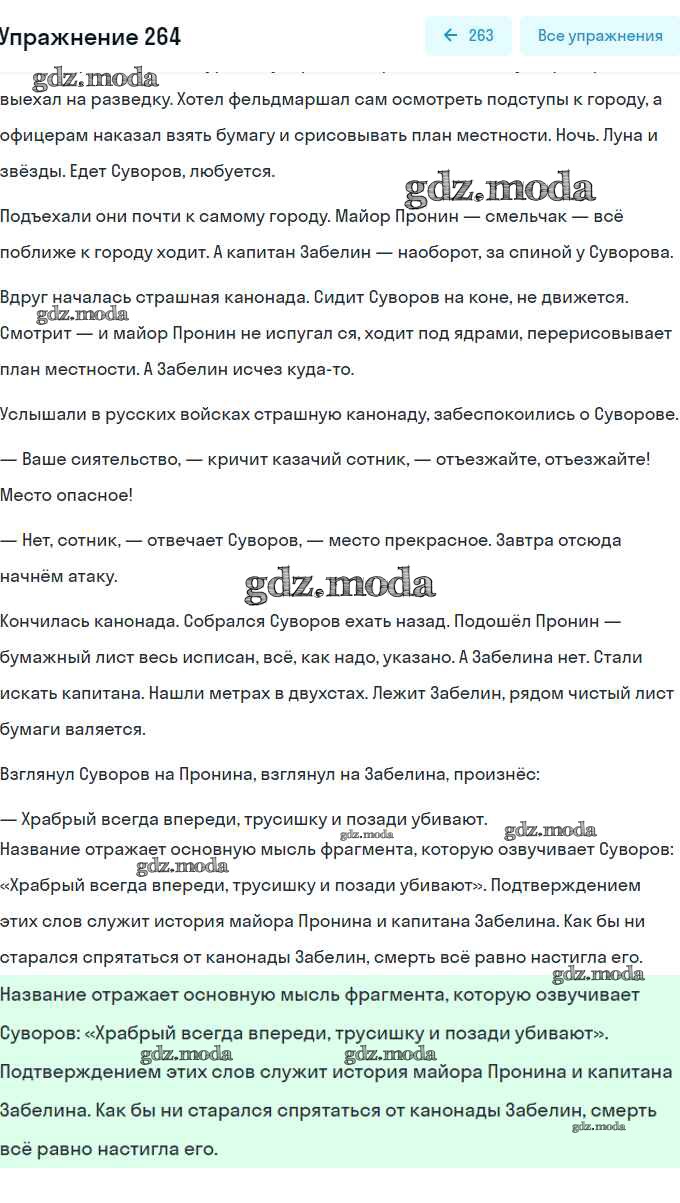 ОТВЕТ на задание № 264 Учебник по Русскому языку 8 класс Рыбченкова