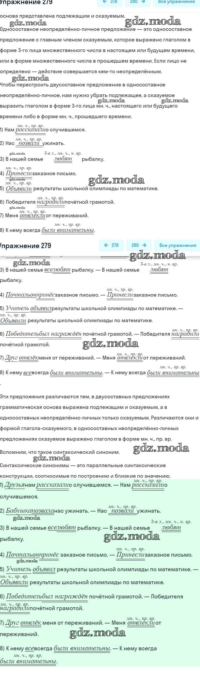 ОТВЕТ на задание № 279 Учебник по Русскому языку 8 класс Рыбченкова