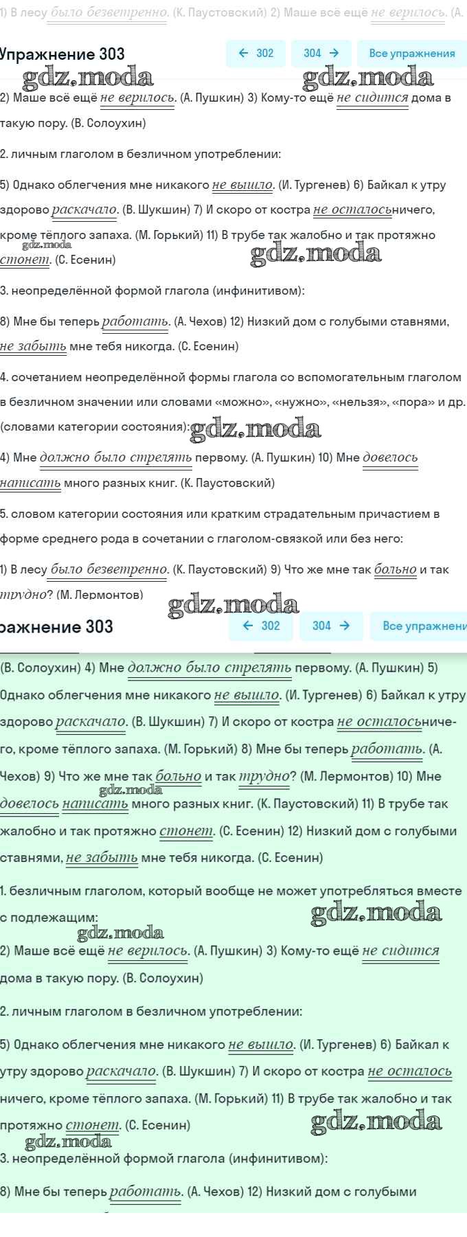 ОТВЕТ на задание № 303 Учебник по Русскому языку 8 класс Рыбченкова