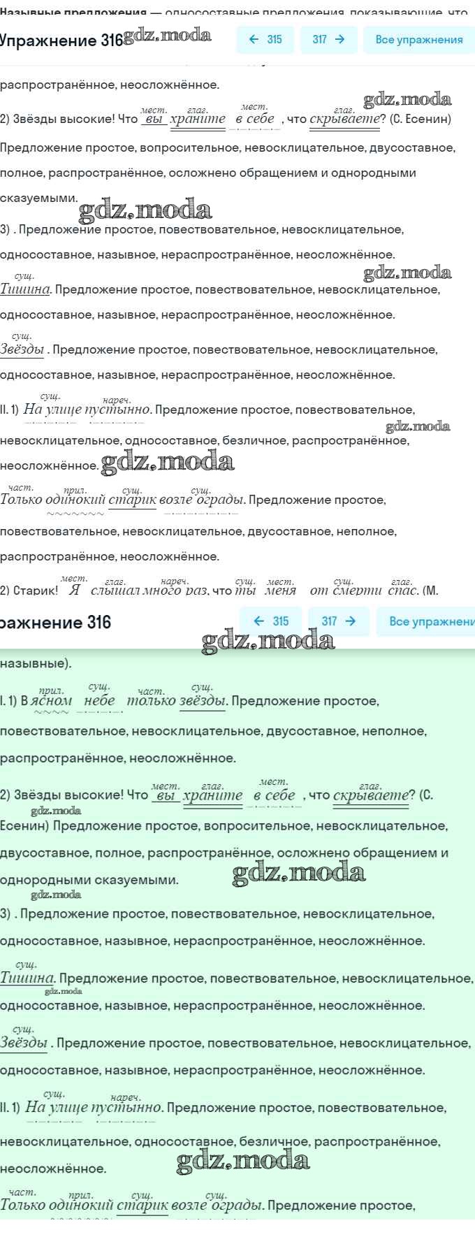 ГДЗ решение к заданию № 316 Русский язык 8 класс Рыбченкова Л.М. Просвещение, Просвещение 2022, 2015 ФГОС бесплатно на гдз.мода!