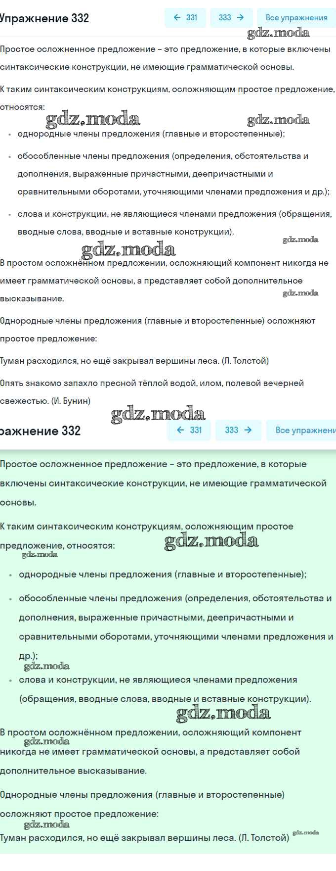 ОТВЕТ на задание № 332 Учебник по Русскому языку 8 класс Рыбченкова