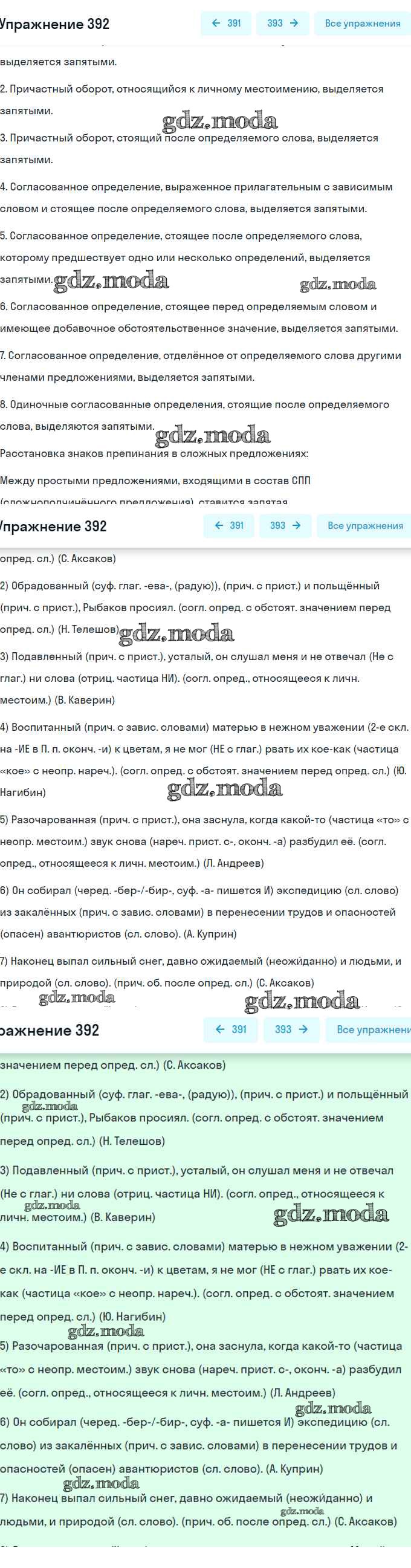 ОТВЕТ на задание № 392 Учебник по Русскому языку 8 класс Рыбченкова