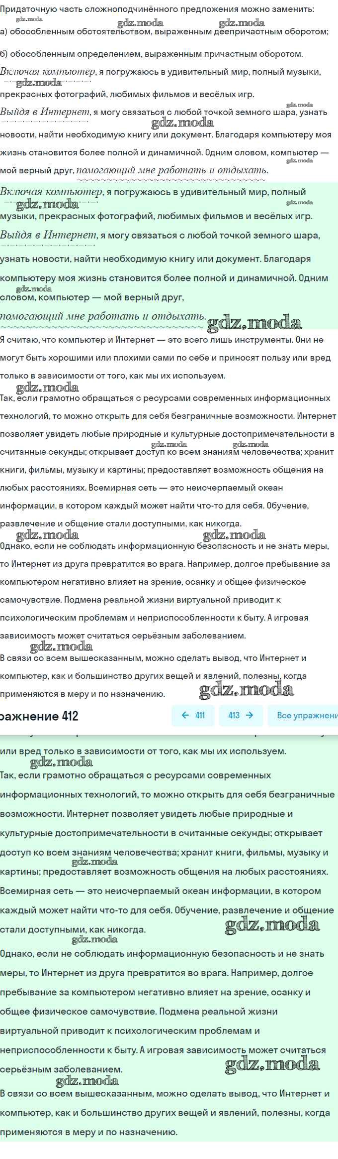 ГДЗ решение к заданию № 412 Русский язык 8 класс Рыбченкова Л.М. Просвещение, Просвещение 2022, 2015 ФГОС бесплатно на гдз.мода!