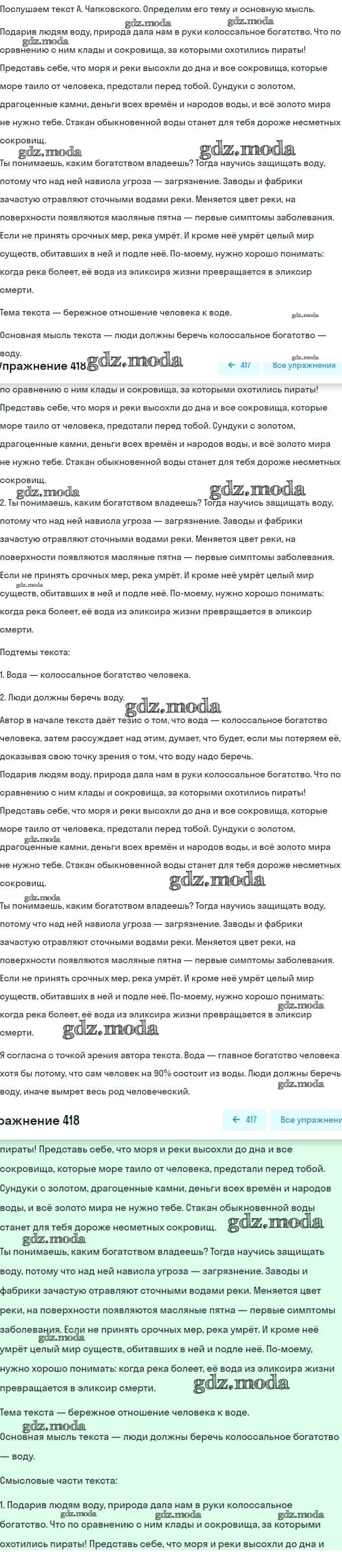 ОТВЕТ на задание № 418 Учебник по Русскому языку 8 класс Рыбченкова