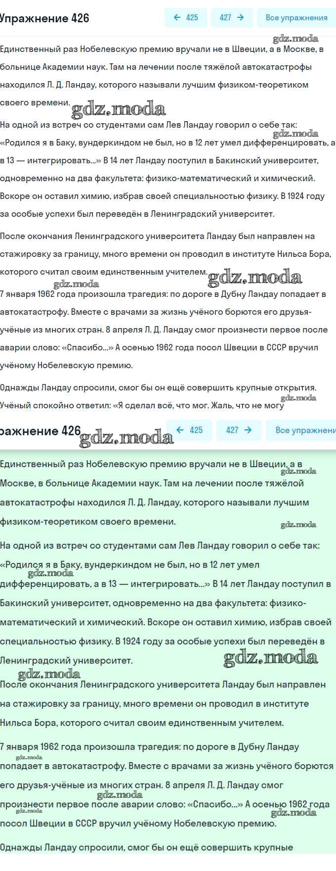 ОТВЕТ на задание № 426 Учебник по Русскому языку 8 класс Рыбченкова