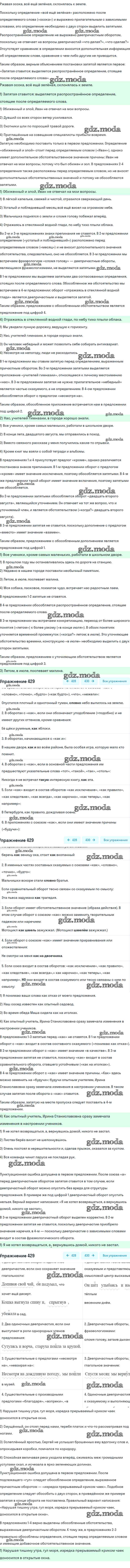 ОТВЕТ на задание № 429 Учебник по Русскому языку 8 класс Рыбченкова