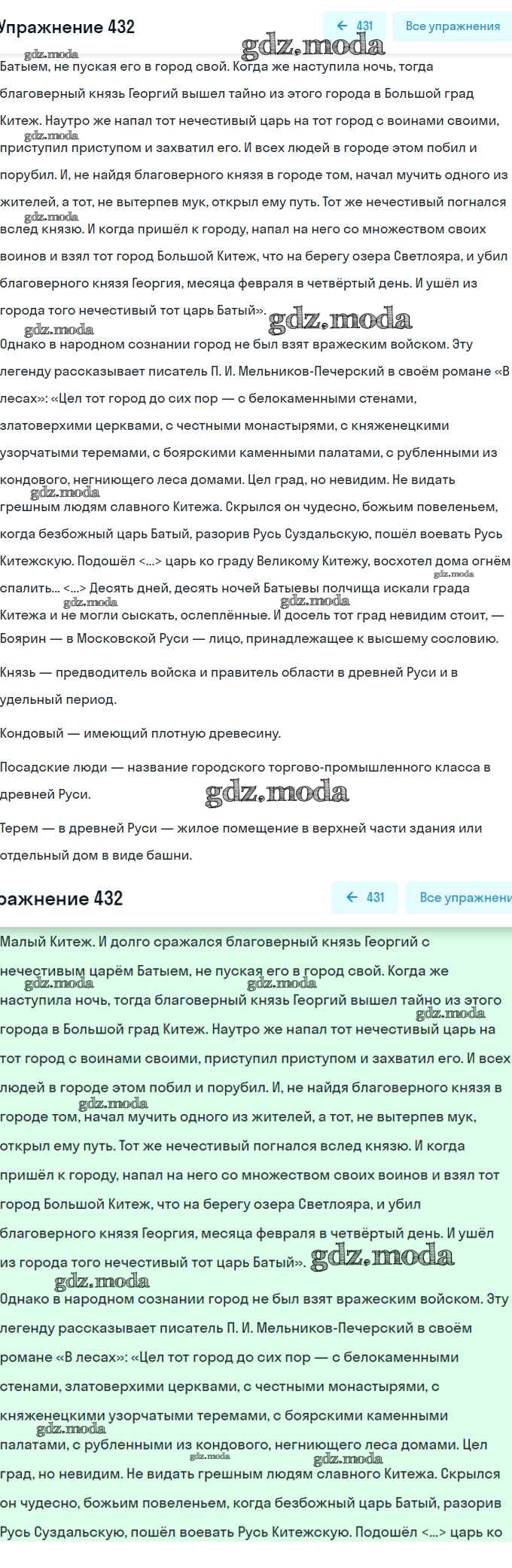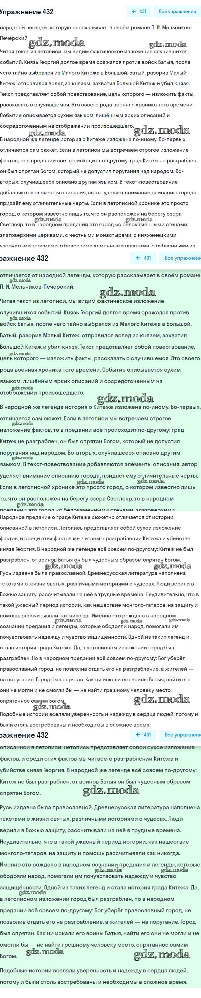 ОТВЕТ на задание № 432 Учебник по Русскому языку 8 класс Рыбченкова