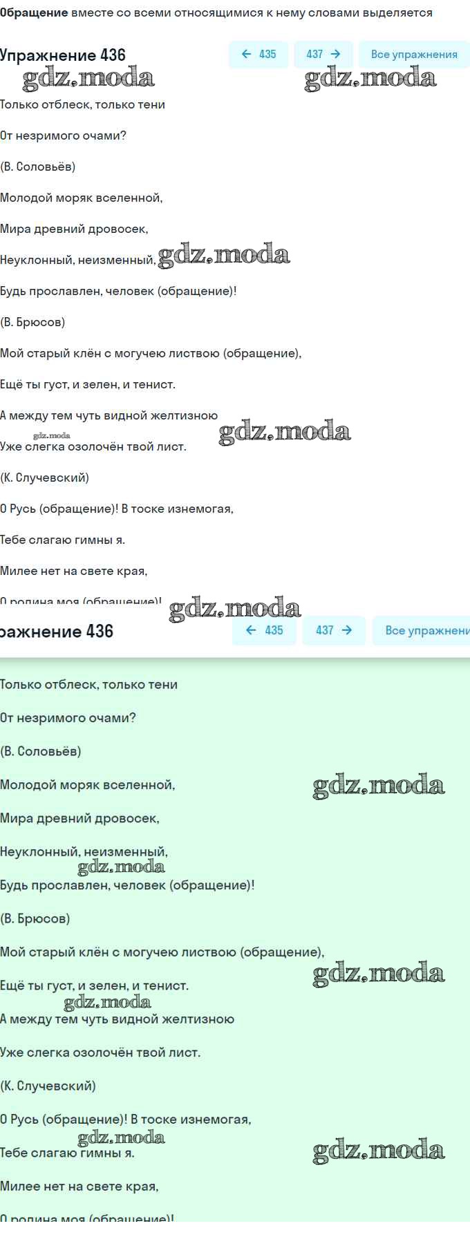 ОТВЕТ на задание № 436 Учебник по Русскому языку 8 класс Рыбченкова