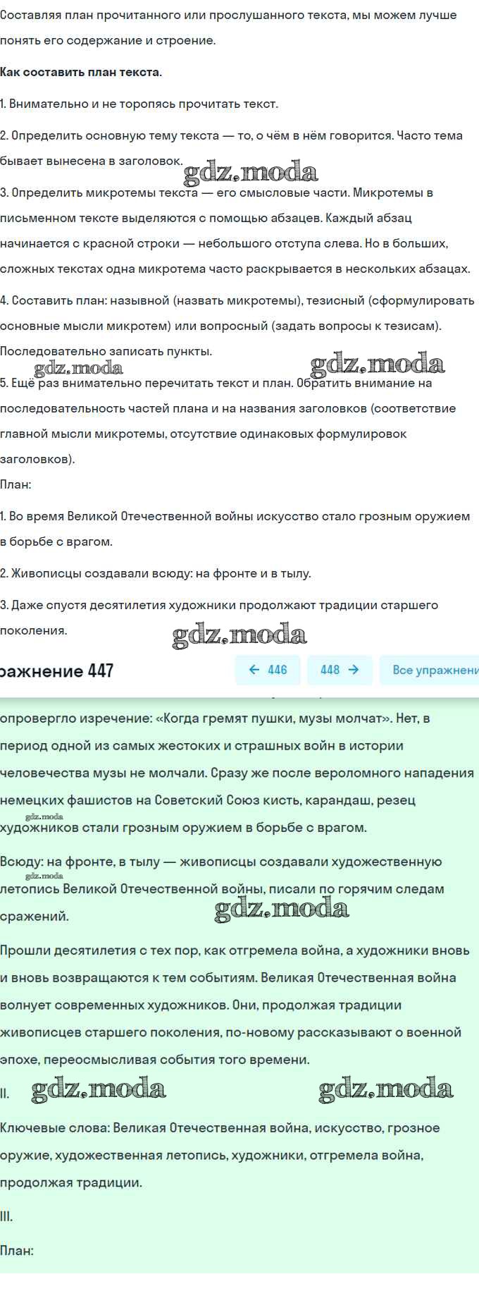 ОТВЕТ на задание № 447 Учебник по Русскому языку 8 класс Рыбченкова
