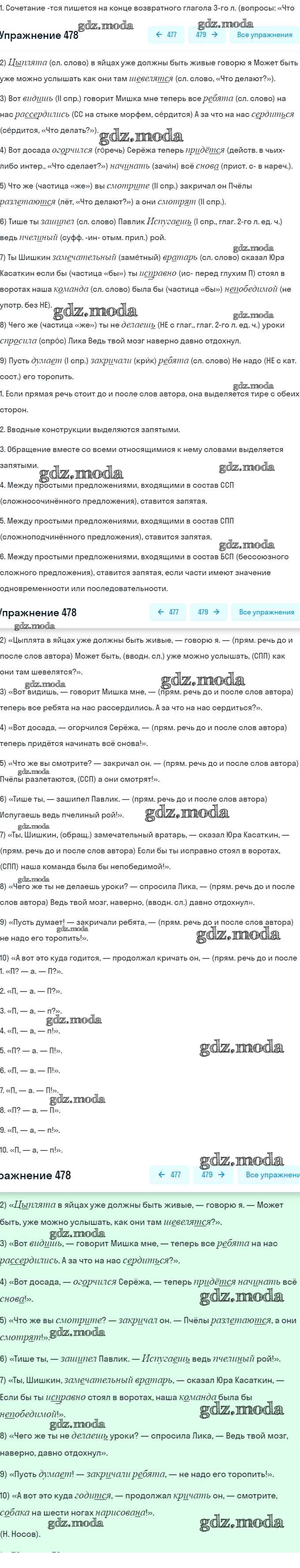 ОТВЕТ на задание № 478 Учебник по Русскому языку 8 класс Рыбченкова