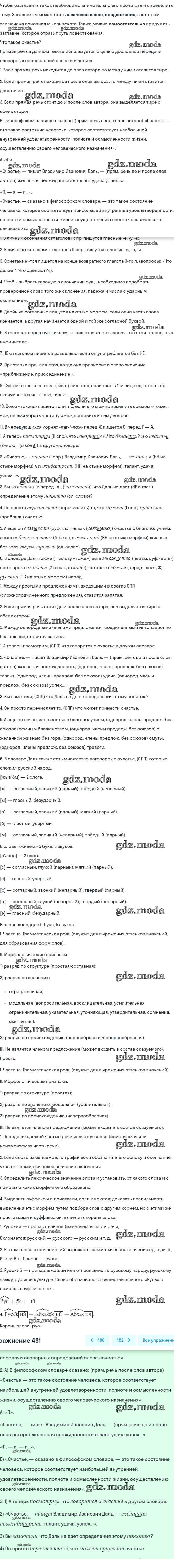 ОТВЕТ на задание № 481 Учебник по Русскому языку 8 класс Рыбченкова