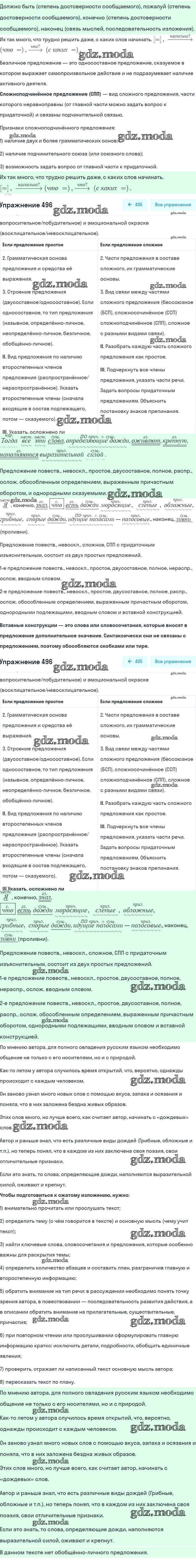 ОТВЕТ на задание № 496 Учебник по Русскому языку 8 класс Рыбченкова