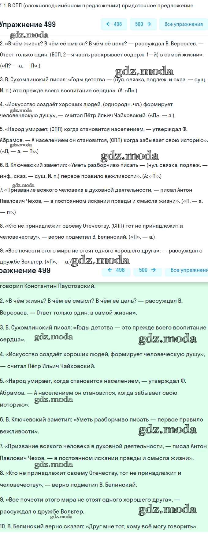 ОТВЕТ на задание № 499 Учебник по Русскому языку 8 класс Рыбченкова