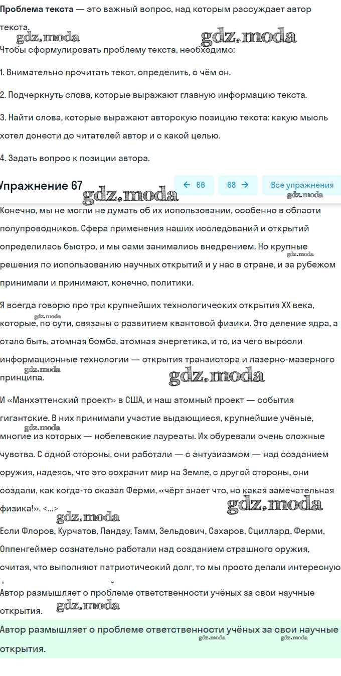 ОТВЕТ на задание № 67 Учебник по Русскому языку 8 класс Рыбченкова